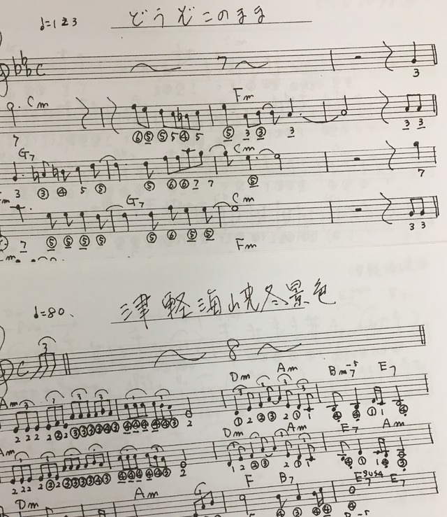 徳永延生が完全監修したアドリブ入りの楽譜集で、 替え指も研究し、最も理想的な穴番号を全曲に記載しています。 楽譜集1冊 10曲入 (模範演奏、カラオケ(マイナスワン)CD2枚セット付) 歌謡曲集<2> 曲名 アーティスト 難易度 キー 1 わかってください 因幡晃 ☆☆☆ Dm 2 天城越え 石川さゆり ☆☆ Bm 3 舟唄 八代亜紀 ☆☆☆ Am 4 北の宿から 都はるみ ☆☆ Em 5 昴 谷村新司 ☆☆☆ F 6 聖母たちのララバイ 岩崎宏美 ☆☆☆ Bm 7 恋におちて 小林明子 ☆☆ D 8 シクラメンのかほり 布施明 ☆☆ Am 9 つぐない テレサ・テン ☆☆☆☆ Dm 10 妹 かぐや姫 ☆☆☆ D