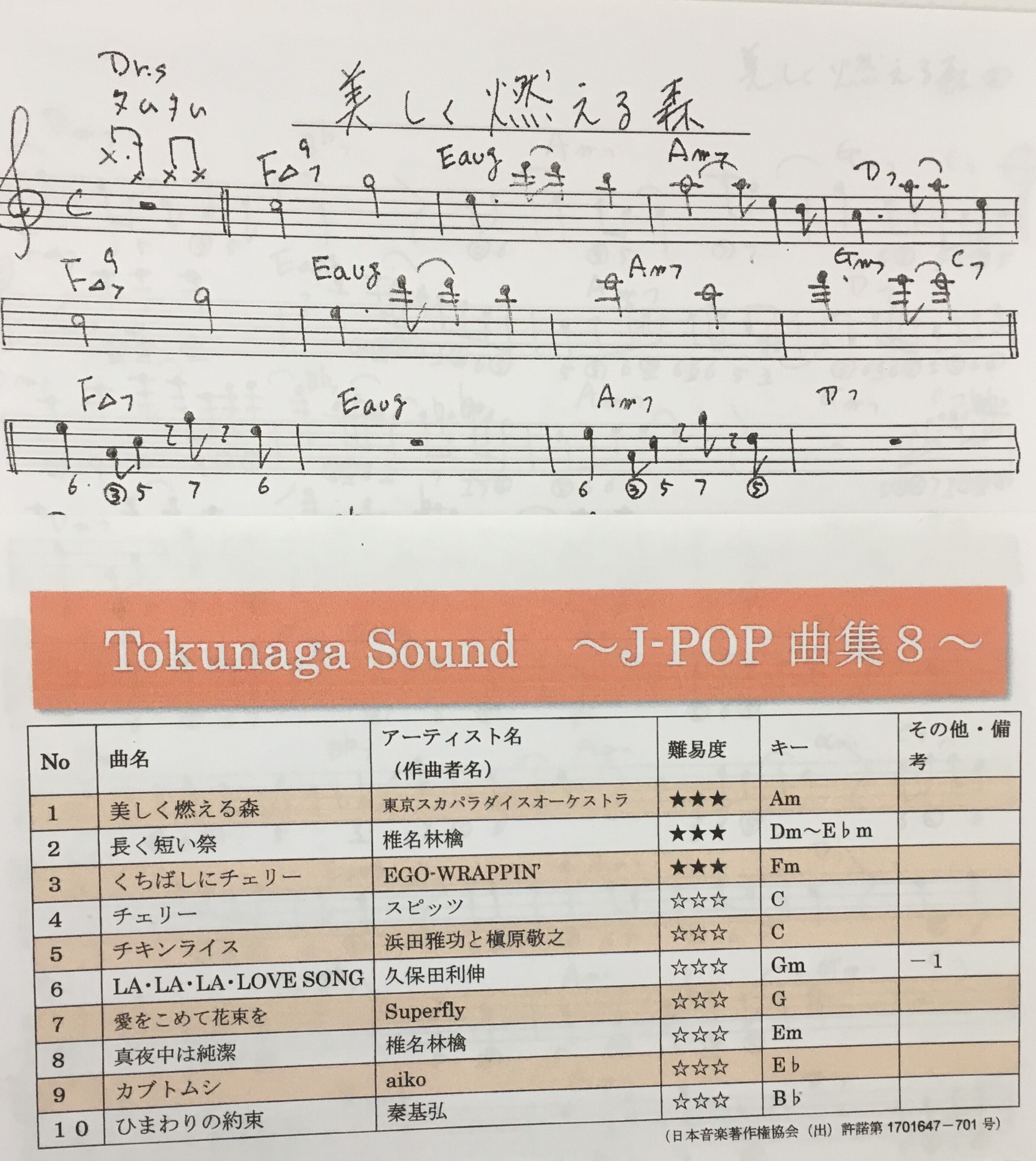 クロマチックハーモニカの徳永延生が完全監修したアドリブ入りの楽譜集で、