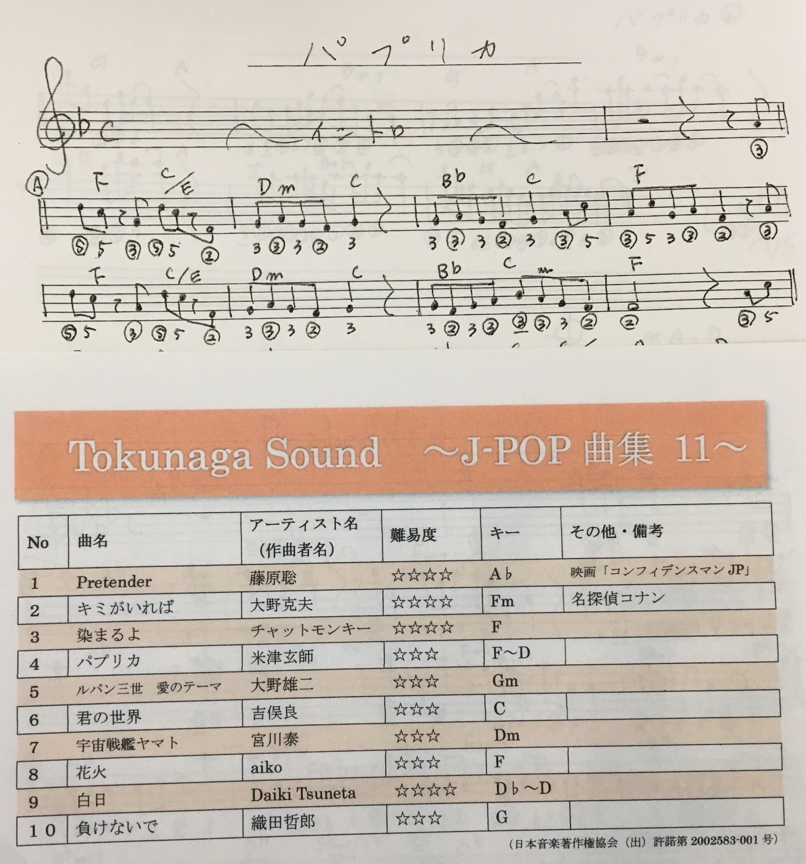 クロマチックハーモニカの徳永延生が完全監修したアドリブ入りの楽譜集で、