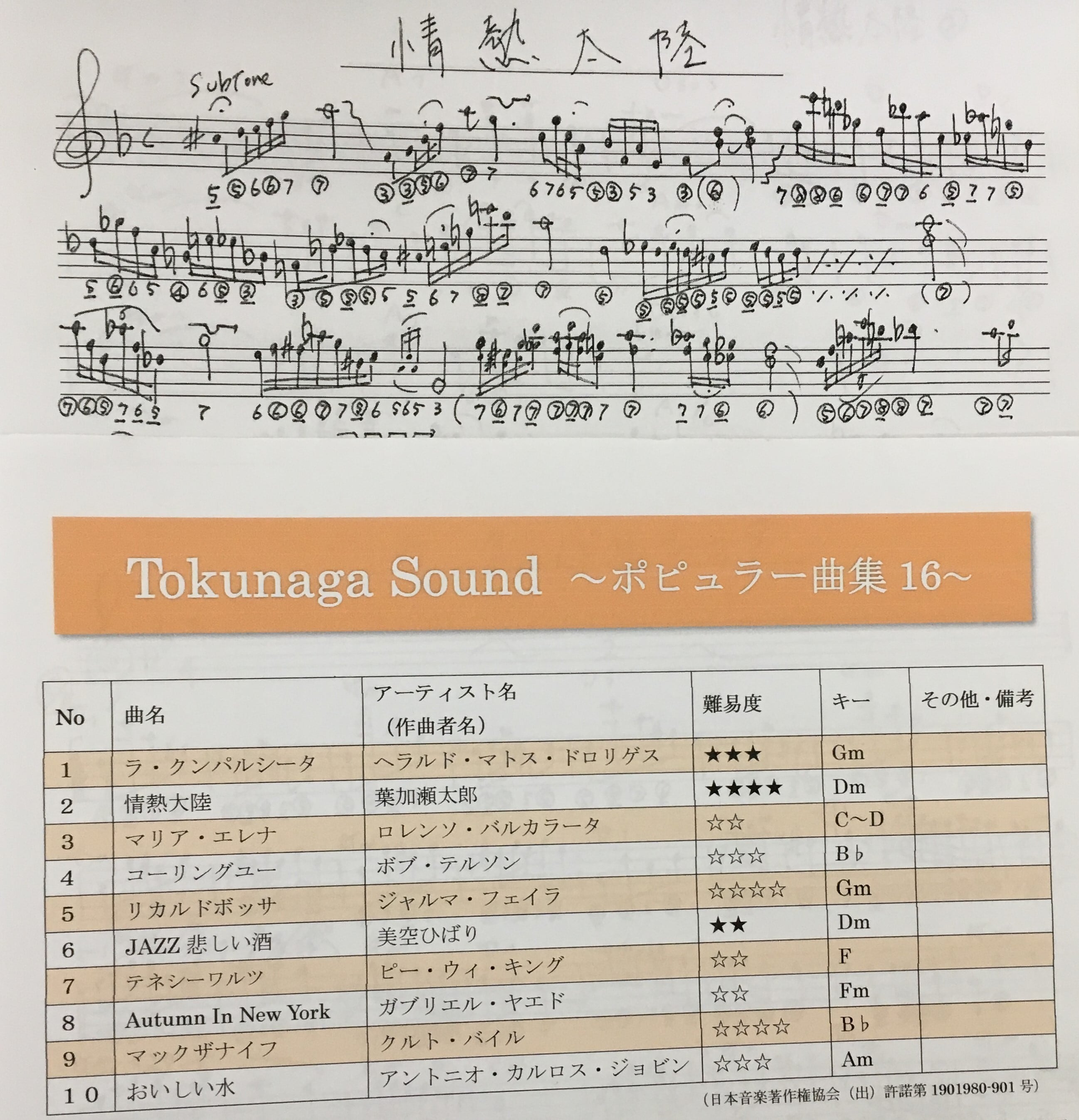 クロマチックハーモニカの徳永延生が完全監修したアドリブ入りの楽譜集で、