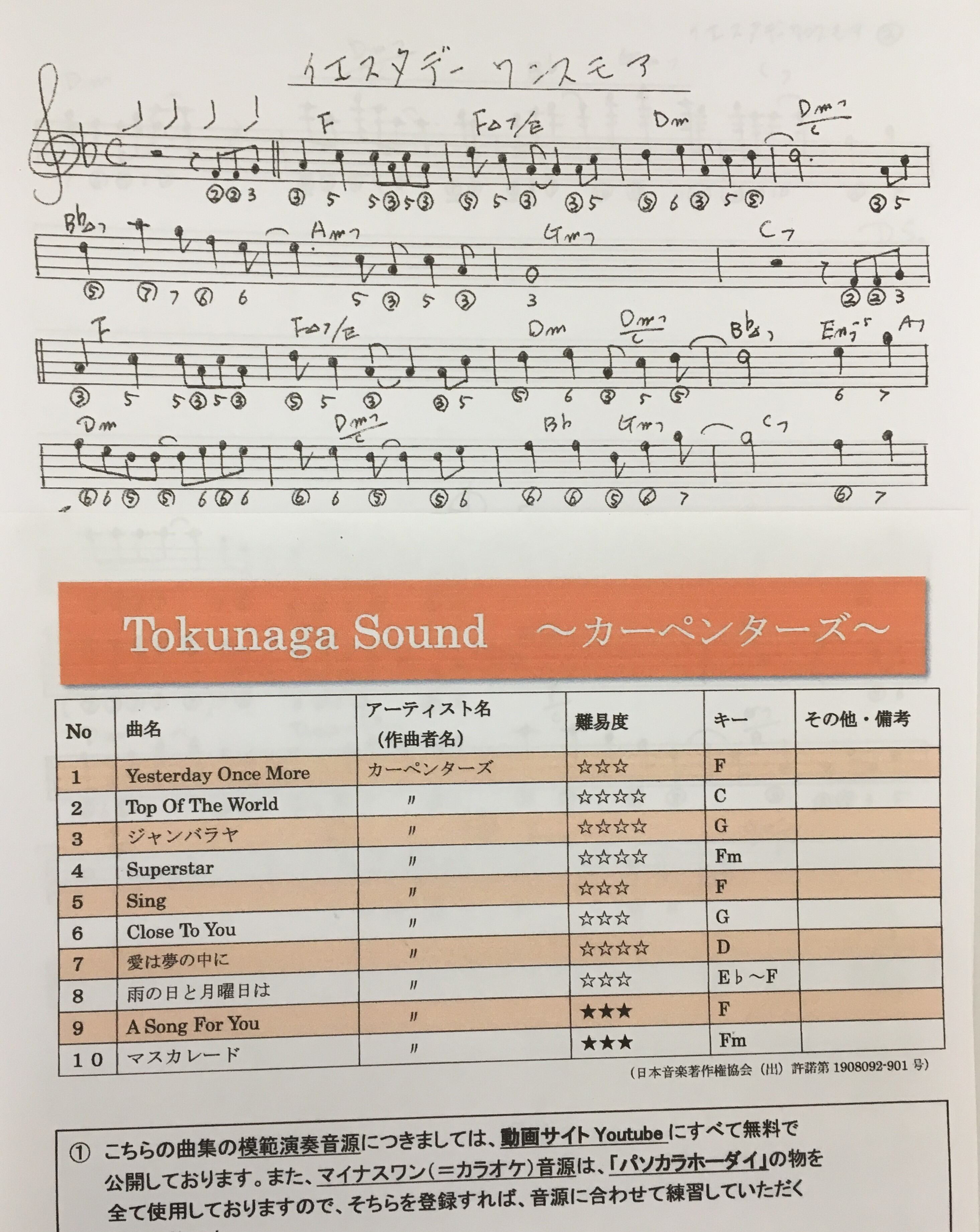 クロマチックハーモニカの徳永延生が完全監修したアドリブ入りの楽譜集で、