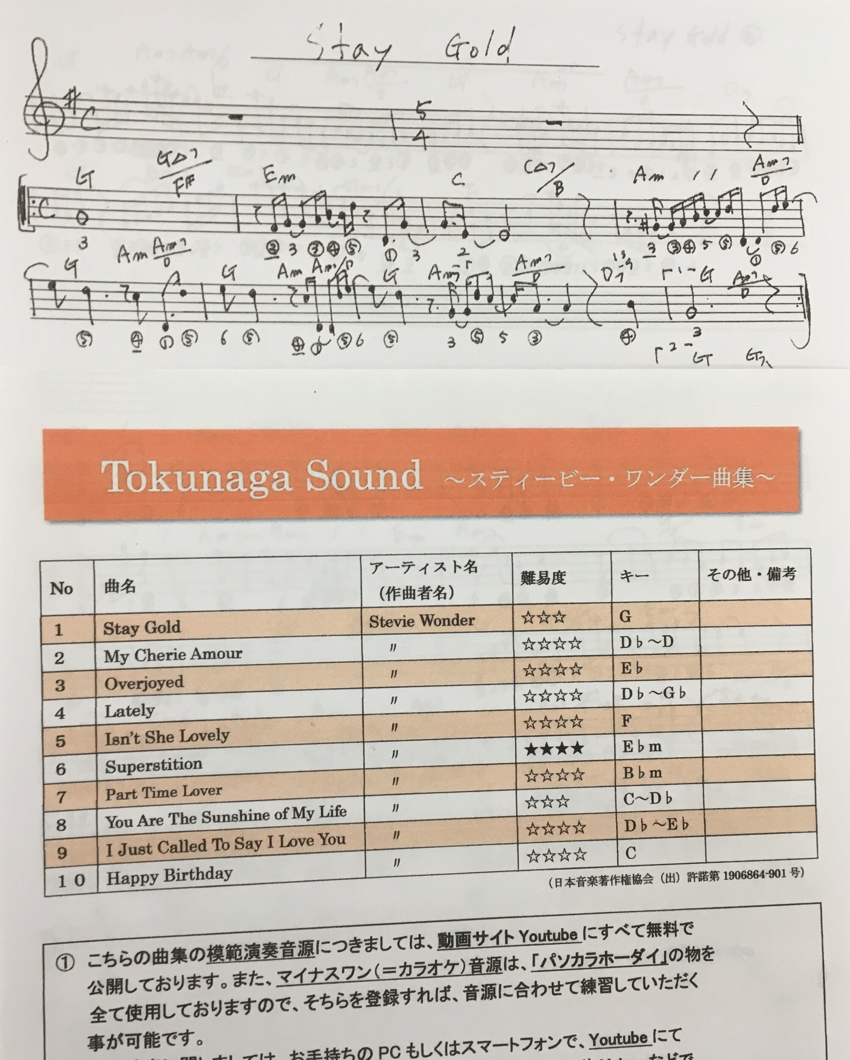 クロマチックハーモニカの徳永延生が完全監修したアドリブ入りの楽譜集で、